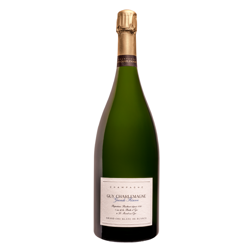 Guy Charlemagne Reserve Brut Grand Cru Blanc de Blancs Magnum – spalvingas šampanas, su daugybe skonių. Šviežias, minerališkas, su ryškiomis citrusų natomis. Magnum, puikus pasirinkimas didesnei kompanijai ar šventei.